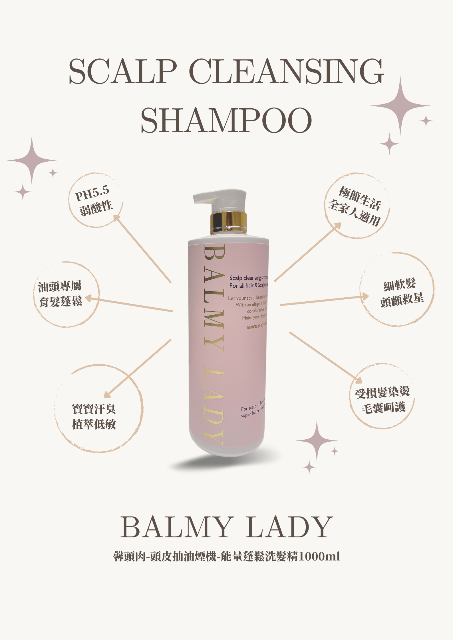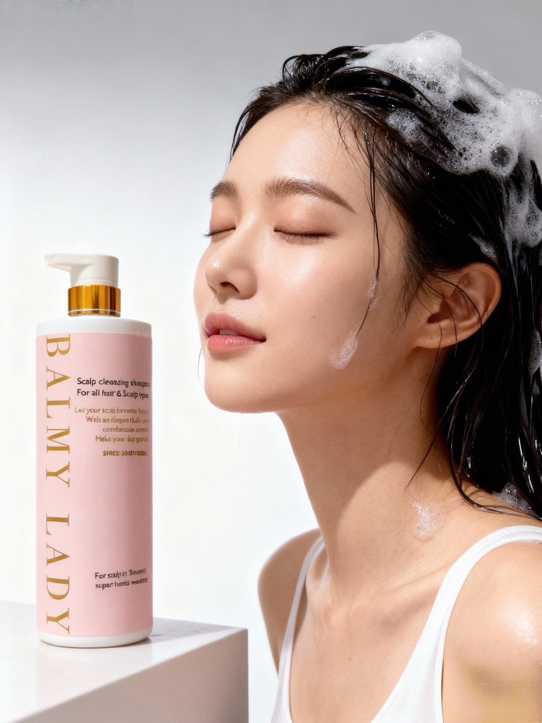 BALMY LADY 採用 pH5.5 弱酸性親膚配方,溫和潔淨頭皮與髮絲,維持天然防護力,對抗濕悶與油垢,守護健康髮肌平衡。